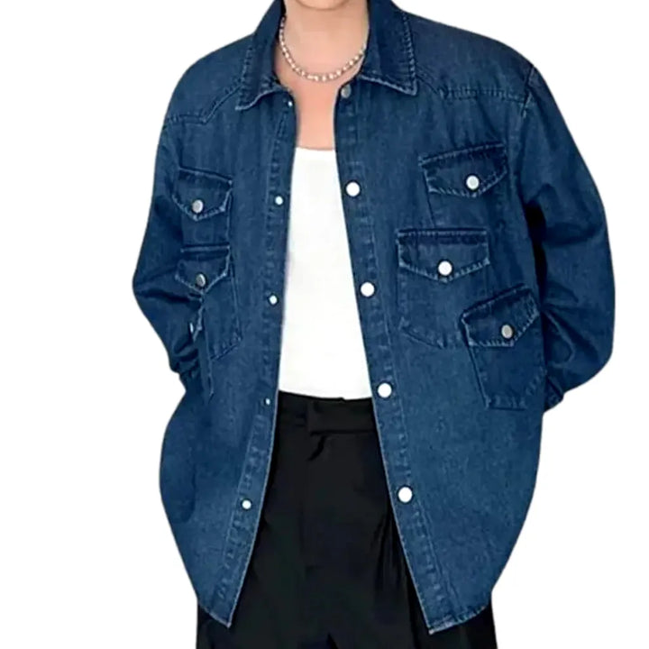 Fashion Street Oversized Men's Jeans Jacket - Blue